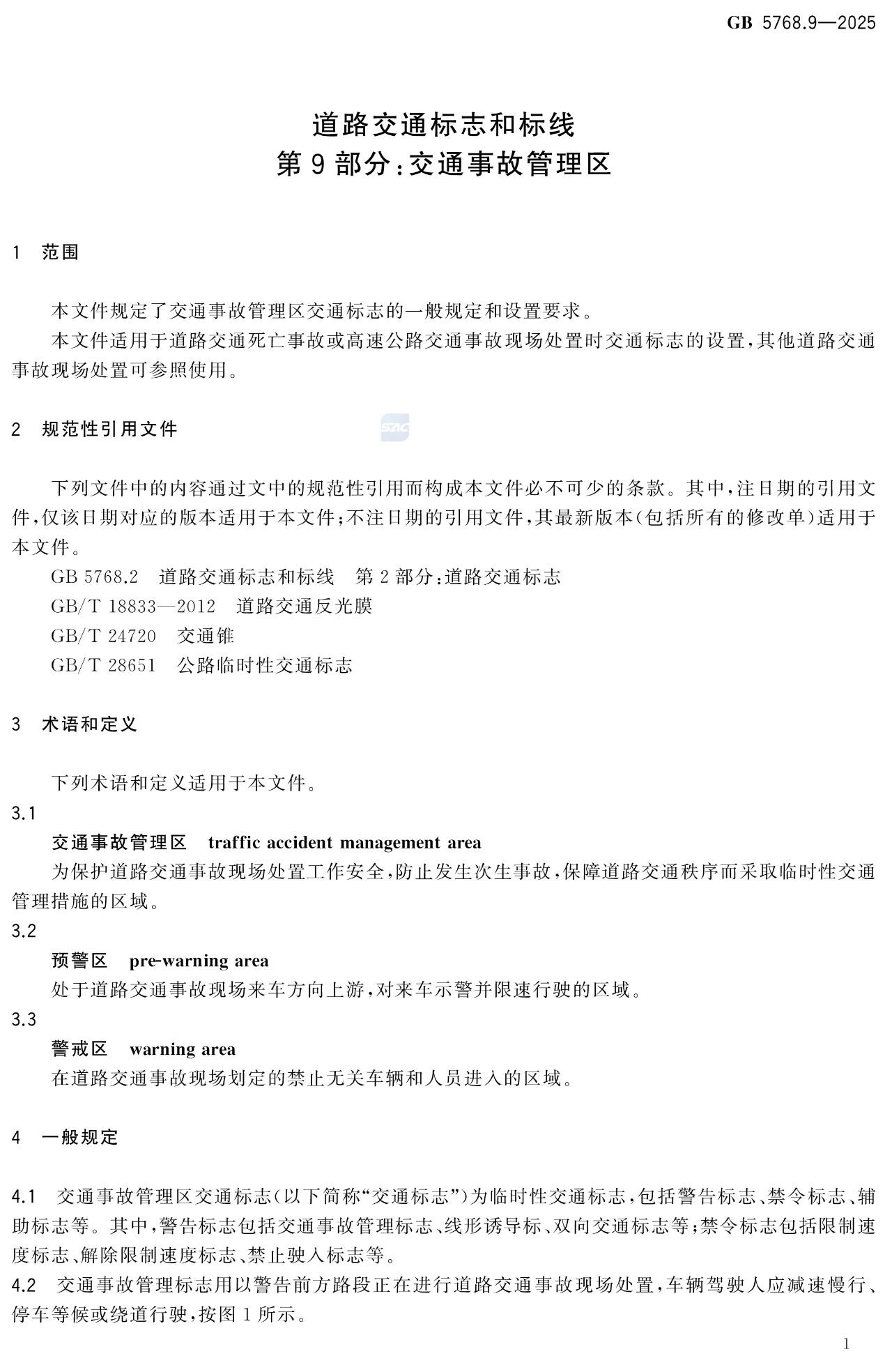 道路交通标志和标线 第9部分:交通事故管理区(GB5768.9-2025)