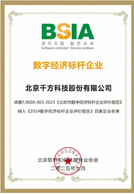 近日,《2024北京市数字经济标杆企业评价报告》在2025全球数字经济大会专题论坛正式发布。我会会员单位北京千方科技股份有限公司入选“2024北京市数字经济标杆企业”百强名单。北京数字经济标杆企业是在北京市经济和信息化局指导下,由北京软件和信息服务业协会、北京市数字经济促进中心、中国信息通信研究院、德勤中国组成评价工作组,经过严格的提名、审查与评价流程,最终遴选出的100家标杆企业。