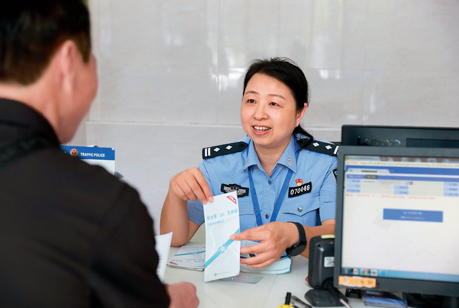 “这个该怎么弄啊?”老人因不熟悉手机操作急得满头大汗,钟菁接过手机轻声说:“您别急,我帮您。”这样的场景每天要重复几十次。在大厅值班时,钟菁来回穿梭于群众中间,看看材料是否齐全,向扣分不多的车主讲解如何使用“交管12123”App学法减分,调取视频证据和处罚依据向有争议的车主耐心解释……她沙哑的嗓音和日均万步的足迹,成了违法处理中心最温暖的注脚。她常常说的一句话就是:“罚单是冷的,但人心应该是热的。”
