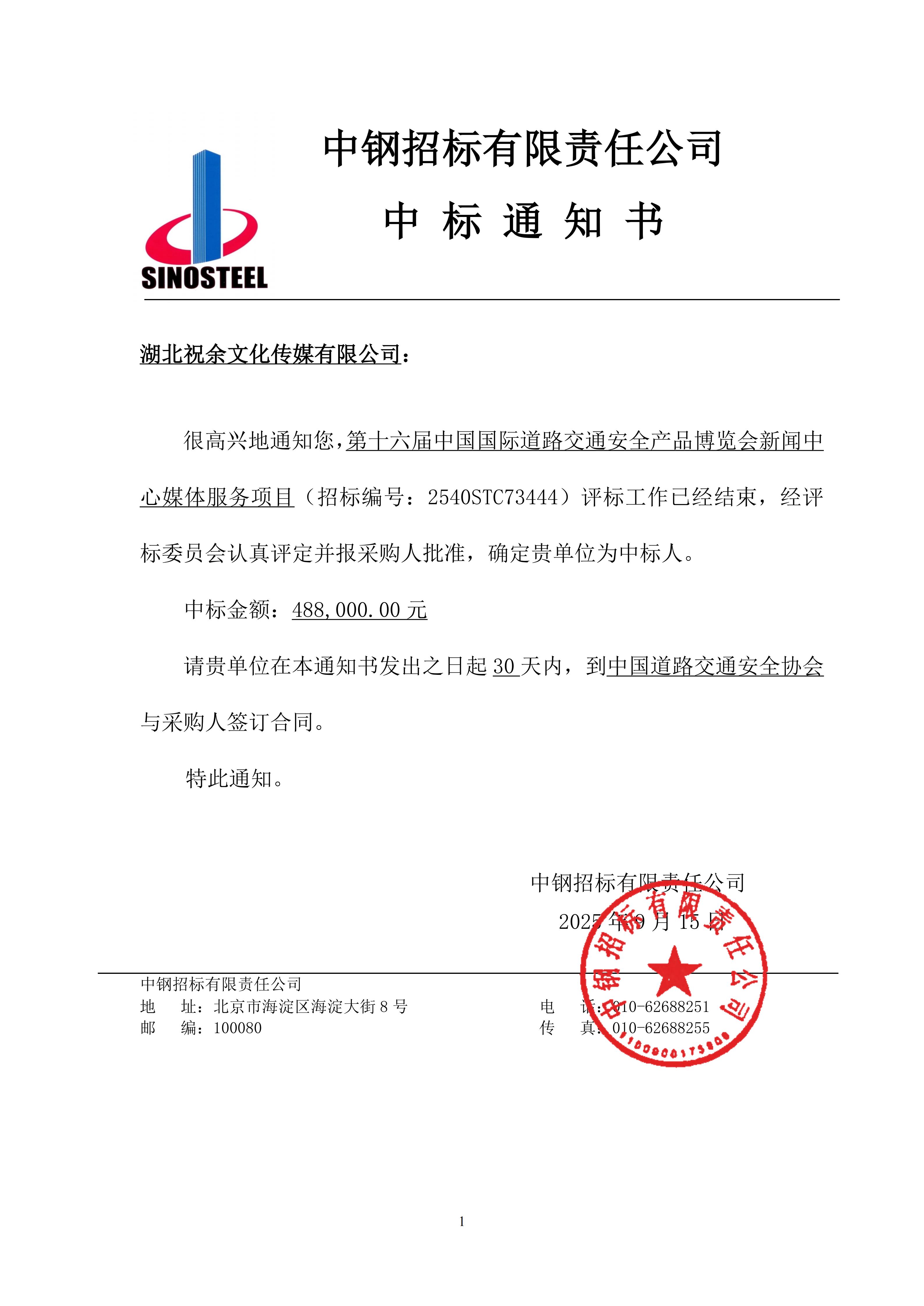 第十六届中国国际道路交通安全产品博览会新闻中心媒体服务项目中标结果公告