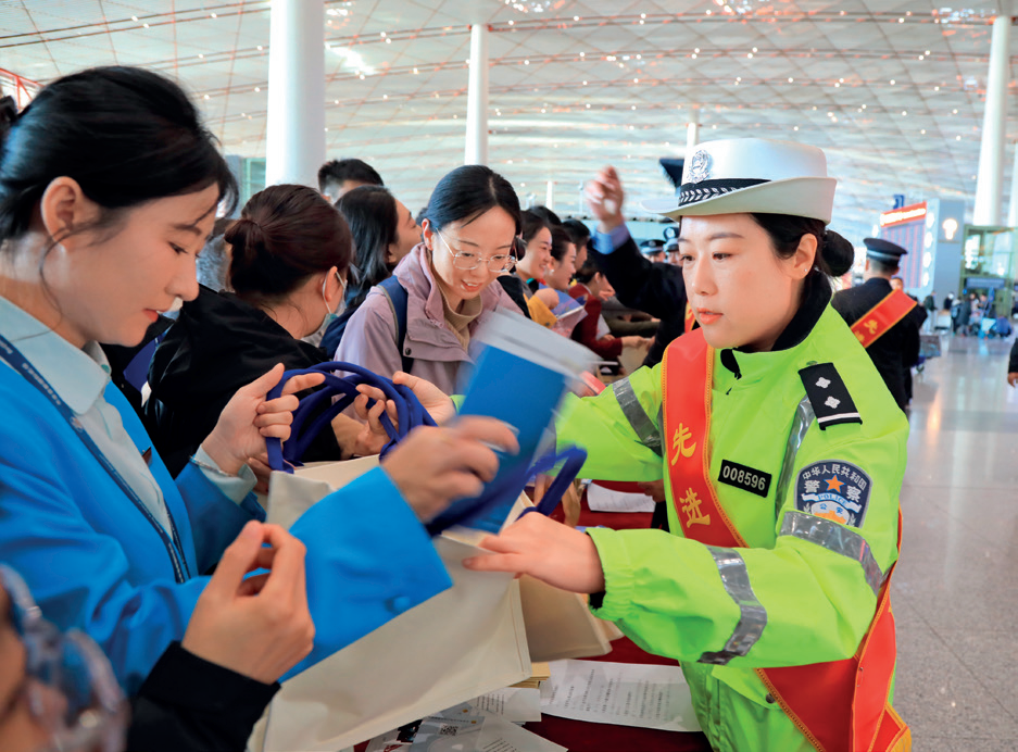 2018年,首都机场航站楼前违法停车、接送机车辆排队拥堵问题成了旅客投诉的“重灾区”。早高峰7点到9点,T3航站楼前平均每分钟有20辆车上客;晚高峰18点到20点,网约车占道等待现象严重……周亭竹与队员们蹲点调研,并将数据一一记下后上报支队领导,“限时停车管理措施”应运而生,措施实施后,航站楼前的拥堵率下降了60%,旅客通行时间平均缩短了15分钟。