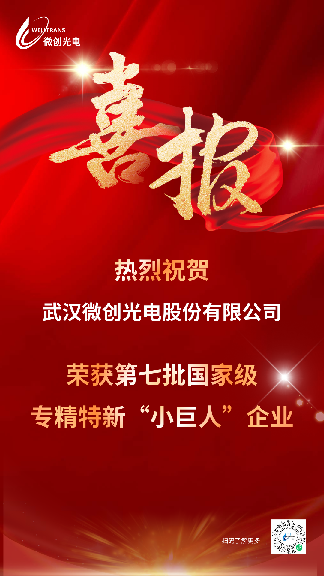 近日,我会会员单位武汉微创光电股份有限公司成功入选2025年国家级专精特新“小巨人”企业名单,荣获国家层面的高度认可。这一成果,标志着公司在“专精特新”发展道路上迈上了新台阶。