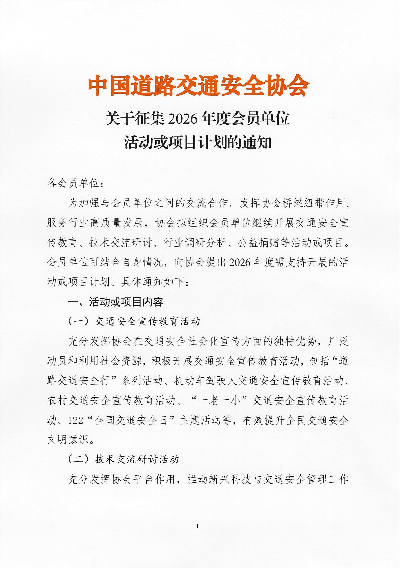 关于征集2026年度会员单位活动或项目计划的通知