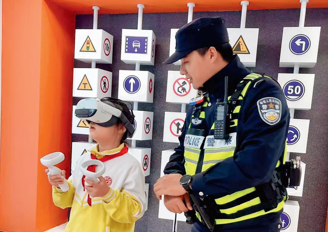 走进南通市五山小学的交通安全研学体验馆,仿佛进入了一个以交通为主题的科学乐园。传统的“禁止”“警告”标语不见了,取而代之的是色彩斑斓的儿童友好斑马线、憨态可掬的卡通交警模型,以及充满科技感的MR(混合现实)、VR(虚拟现实)体验区。交通安全研学体验馆微缩而真实地还原了复杂的城市交通环境,让儿童在绝对安全的情境中,通过交警、行人、驾驶人等角色扮演,理解交通规则,将交通安全融为“肌肉记忆”。