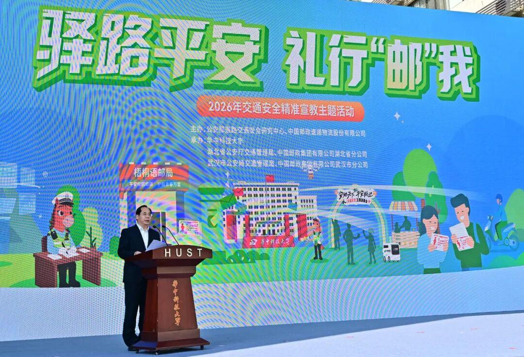 寒假将至,2026年春运大幕也即将开启。为贯彻国家“十五五”规划中关于加快建设交通强国、平安中国的总体要求,推进交通安全精准宣教走深走实,1月13日,公安部道路交通安全研究中心联合中国邮政速递物流在湖北武汉华中科技大学主办了“驿路平安礼行‘邮’我”2026年交通安全精准宣教主题活动。