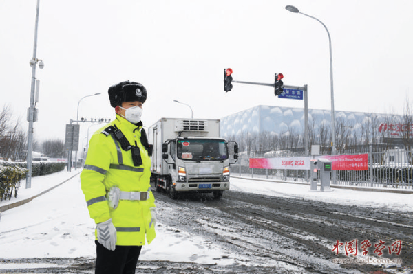 北京市公安局民警在冬奥场馆周边维护交通秩序。赵雅丹摄