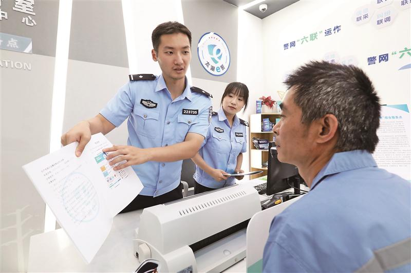 “现在不少业务都能在网上办了,我连家门都不用出,办好的证明还能直接寄到家里,这个服务真好!”连日来,不少群众发现在“太湖e警”微信小程序实现了“网上办”功能,和生活息息相关的户政、交警、出入境等公安业务都可以在小程序中办理。宜兴市公安局政务服务管理大队大队长黄钰介绍:“今年以来,我们不断延伸服务触角,把公安政务服务融入社区、村镇,逐步实现了‘市区有中心、乡镇有综窗、社区有终端’的便民服务矩阵。”